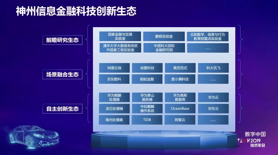 在生态创新方面,神州信息加强与生态伙伴的深度合作,共建生态。比如与拥有底层基础软硬件研究能力的华为、龙芯等企业打造自主创新生态;与科大讯飞和BATJ等携手打造场景融合生态;并借助外脑,与国家金融与发展实验室、鹏城实验室、北航及清华大学等一系列院校、外研单位达成战略合作,在前瞻研究方面开拓视野,构建生态。